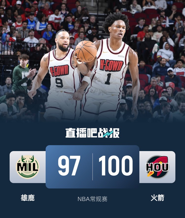 火箭(36-22):杰伦-格林25分8板3助、申京23分11板3助3帽、狄龙16分8板4助、贾巴里-史密斯13分8板、伊森12分6板1助2断、阿门9分9板6助2帽、杰夫-格林2分1助、霍勒迪2板、兰代尔1板