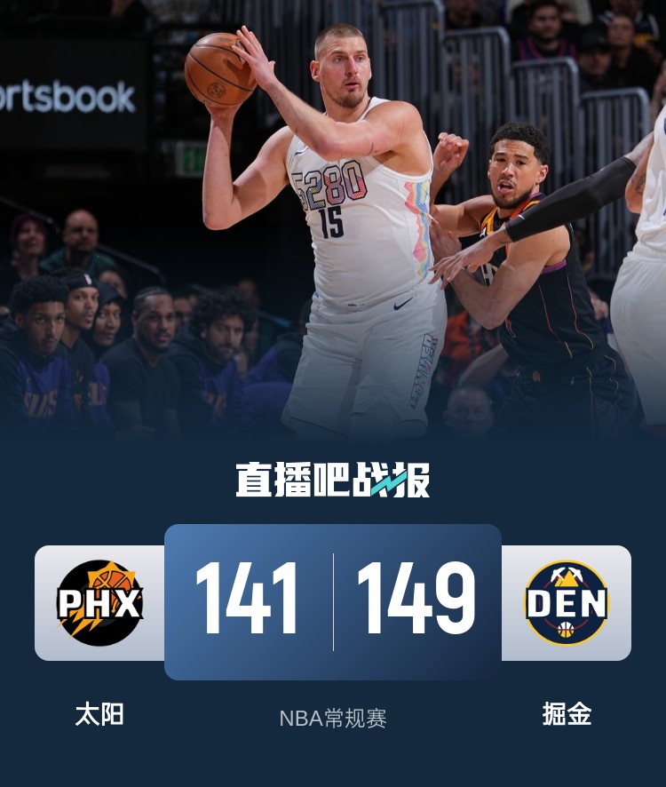3月8日讯 NBA常规赛,太阳客场挑战掘金。太阳29胜33负排在西部第11,掘金40胜22负高居西部第3。