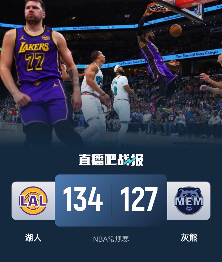 湖人虽然连续客场远征但首节表现相当不错,詹姆斯开局不久便达成个人42000分的里程碑;后半段轮换阶段湖人逐渐占据上风,文森特和芬尼-史密斯联手命中三记三分帮助球队拉开两位数分差;次节两队进攻端对攻双双砍下33分,湖人方面上半场4人拿到至少13分多点开花;灰熊方面莫兰特复出手风不太顺14投仅5中,加之首节挖坑导致半场落后11分。休息归来湖人进攻依旧在线但防守端出现问题,贝恩在第三节砍下13分帮助灰熊不断蚕食分差,末节灰熊再送12-5的攻势直接反超比分;不过湖人也在节中回敬11-2的攻势夺回主动权。决胜时刻湖人顶住压力,里夫斯关键2+1为球队拉开优势锁定胜局。最终,湖人力擒灰熊拿下关键卡位战。
