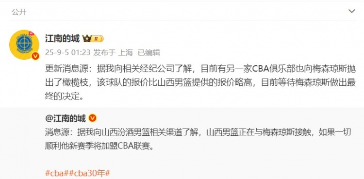 9月5日讯 据媒体人@江南的城 更新社媒透露,山西男篮正在与梅森-琼斯接触。