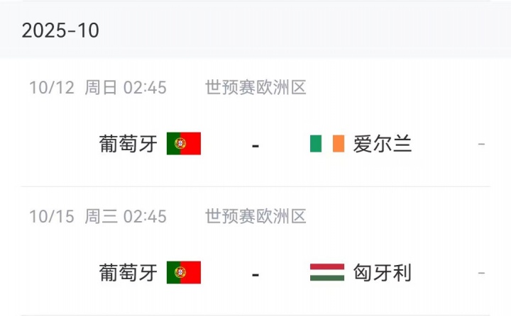 葡萄牙10月份赛程↓