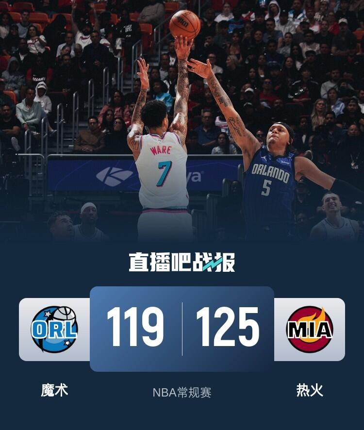 热火(23-22):希罗30分8板12助、阿德巴约26分10板9助、韦尔19分10板2断、约维奇15分7板2助2断、邓罗15分3板4助3断、罗齐尔11分2板3助、拉松5分、海史密斯4分3板4助