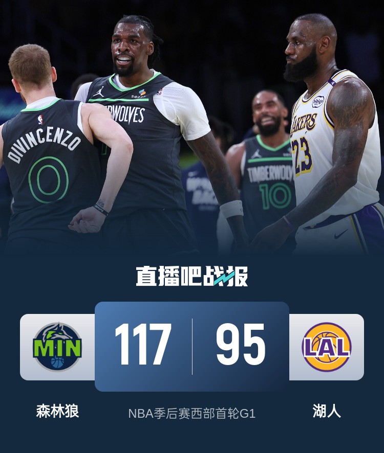 比赛上来,湖人就连拿六分抢下开局,森林狼稍稍追分后东契奇又是连续得分给出回应,后者首节独得16分,次节场上局势突变,森林狼在不到三分钟的时间里轰出12-2的攻势迅速反超,湖人的进攻遇到大麻烦半节多的时间只拿到6分,分差也被对手拉开到两位数,半场结束时森林狼领先11分;下半场回来,湖人的表现更加糟糕,不到两分钟的时间就被森林狼轰出11-0的攻势,分差也是突破二十分,不过爱德华兹在对抗中伤到小腿返回更衣室,湖人一波10-0稍稍迫近比分,东契奇更是轰进一记超远的中线压哨打板三分,末节爱德华兹重新回到场上,他的得分也是遏制住了湖人反扑的势头,最终森林狼轻取湖人抢下开门红。