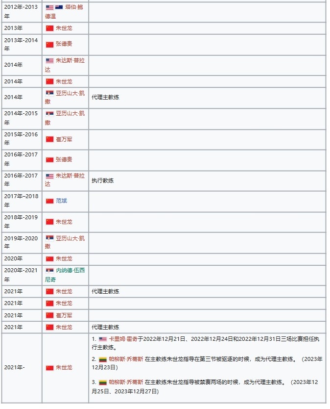 2020年,朱世龙第四次从凯撒手中接过主帅职位,赛季中期就被伍西尼奇代替(第四次下课)。