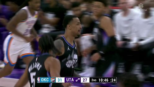2月22日讯 NBA常规赛,爵士今日迎战雷霆,前者上场比赛不敌快船,后者则是输给森林狼,此役塞克斯顿缺战。比赛上来,雷霆就连拿五分取得领...
