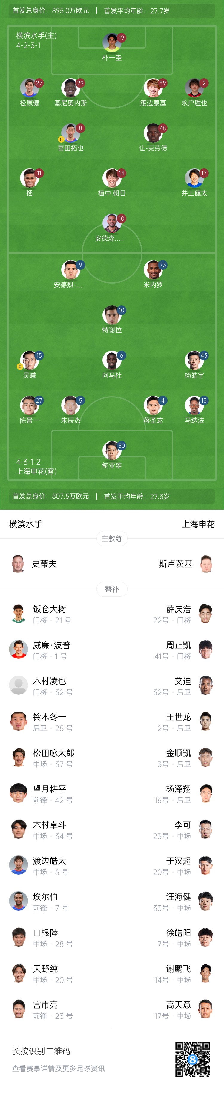 横滨水手替补:1-威廉-波普、21-饭仓大树、32-木村凌也、6-渡边皓太、20-天野纯、25-铃木冬一、28-山根陆、34-木村卓斗、42-望月耕平、7-埃尔伯(F)、23-宫市亮、37-松田咏太郎