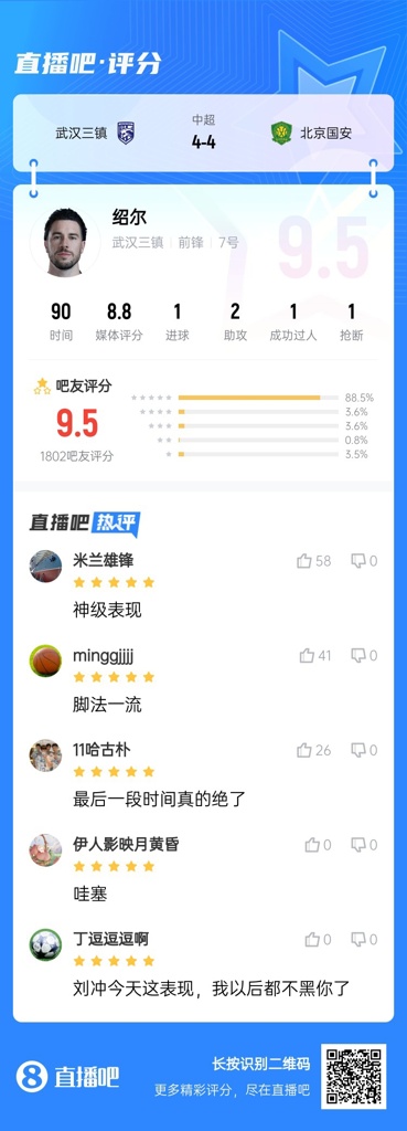 【】中超首轮最佳球员:于金永险胜,得票率仅多基莱斯1.7%