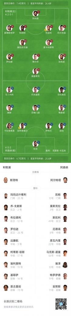 利物浦替补:25-玛玛达什维利、2-戈麦斯、3-远藤航、12-布拉德利、14-基耶萨、17-琼斯、19-埃利奥特、26-罗伯逊、73-恩古莫哈