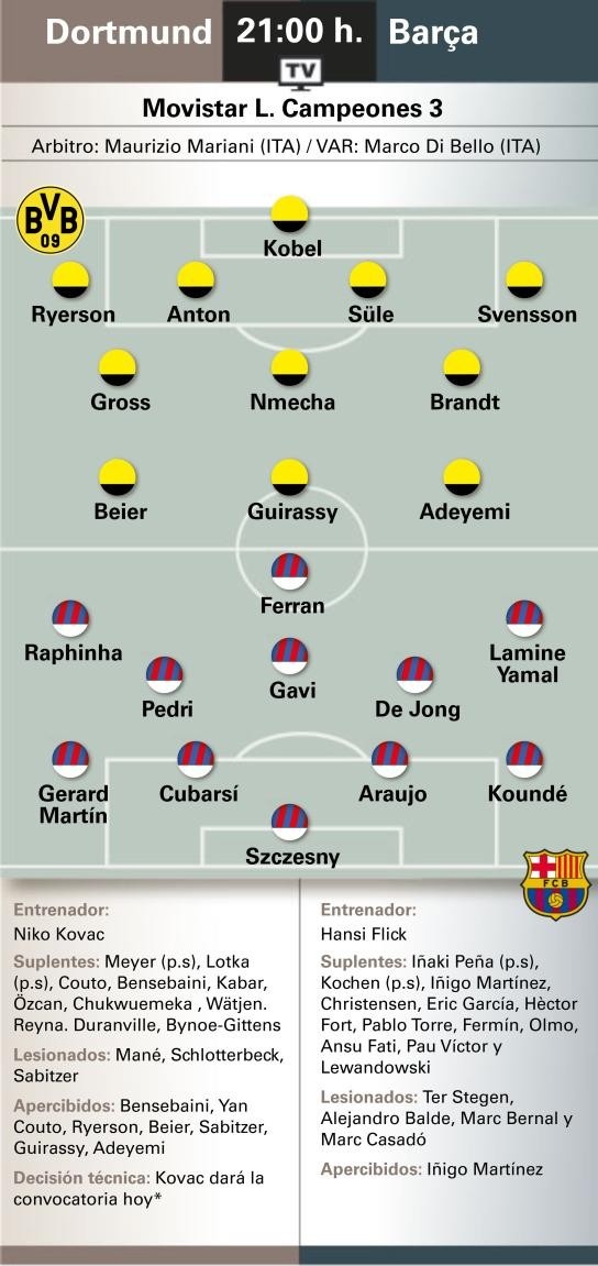 世体预测多特vs巴萨首发:费兰顶替莱万 巴尔德伤缺伊尼戈轮休